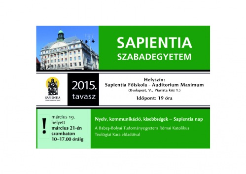 Helyszín: Sapientia Főiskola, Auditorium Maximum (Budapest V., Piarista köz 1.)