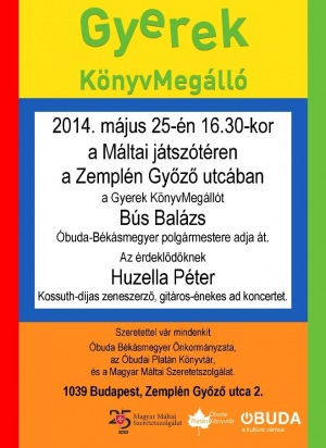 Az ünnepélyes átadására 2014. május 25.-én 16.30 órakor kerül sor, a könyvmegállót Bús Balázs Óbuda-Békásmegyer polgármestere adja át. Minden érdeklődőt szeretettel vár a Magyar Máltai Szeretetszolgálat.
