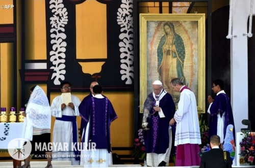 Ferenc pápa ebbe a kontextusba érkezett, hogy szentmisét mutasson be a San Cristóbal de las Casas-i stadionban. A szertartást három maja nyelven tartották: celtál, csol, cotzil nyelven.