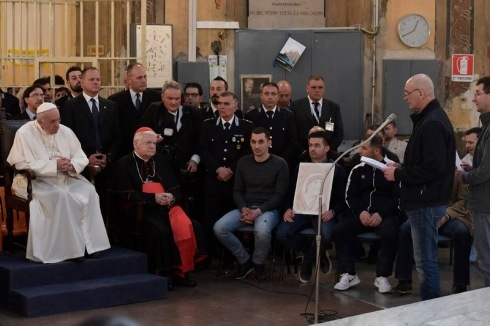 Ferenc pápa rövid, de mély és erőteljes beszédet intézett a rabokhoz, akik megrendülten hallgatták szavait: „Jézus azt mondta: börtönben voltam, és meglátogattatok. Számomra ti, testvéreim, Jézus vagytok. Nekem nincs bátorságom azt mondani valakinek, aki börtönben van, hogy megérdemelte. Miért ti, és miért nem én? Az Úr úgy szeret engem, ahogyan benneteket, ugyanaz a Jézus van bennetek, mint bennem, bűnös testvérek vagyunk.”