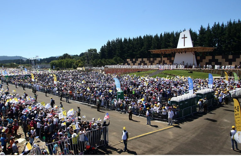 Köszönetet mondok Istennek, amiért megengedte, hogy meglátogassam földrészünknek ezt a szép részét, Araucaníát. A Teremtő megáldotta ezt a földet hatalmas zöld mezőinek termékenységével, lenyűgöző délfenyőerdőivel – Gabriela Mistral ötödik dicsőítő beszéde erről a chilei régióról (Elogios de la tierra de Chile, 1934) –, fenséges havas vulkánjaival, pezsgő életű tavaival és folyóival. Ez a táj Istenhez emel minket, könnyű meglátni az ő keze nyomát minden teremtményen. Férfiak és nők számos nemzedéke szerette és szereti ezt a földet végtelen hálával. Itt szeretnék megállni és szeretném külön is köszönteni a mapucse nép tagjait, valamint a többi bennszülött népeket, akik e déli földeken élnek: a rapanuikat (Húsvét-sziget), az ajmarákat, kecsuákat, atacamákat és a többi sok népet.