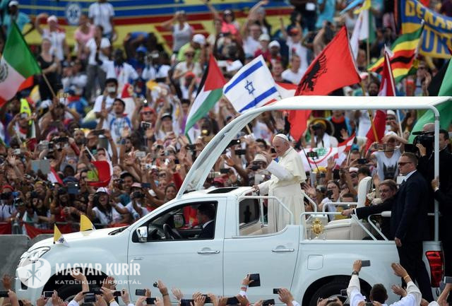 Az alacsony termet és a bénító szégyen után van egy harmadik akadály is, amelyet Zakeusnak le kellett küzdenie, de ez már nem önmagában van, hanem maga körül: a zúgolódó tömeg, mely korábban akadályozta őt, aztán pedig kritizál: Jézusnak nem lett volna szabad belépnie a házába, egy bűnös házába! Milyen nehéz valóban befogadni Jézust, mennyire nehéz elfogadni egy „irgalomban gazdag Istent” (Ef 2,4)! Akadályozhatnak titeket, megpróbálhatják elhitetni veletek, hogy Isten távol van, merev és érzéketlen, jó a jókkal és rossz a rosszakkal. A mi Atyánk azonban „felkelti napját rosszakra és jókra egyaránt” (Mt 5,45), és az igazi bátorságra hív minket: erősebbnek lenni a rossznál, szeretve mindenkit, még az ellenségeket is. Kinevethetnek titeket, amiért hisztek az irgalmasság szelíd és alázatos erejében. Ne féljetek, hanem gondoljatok ezeknek a napoknak a szavaira: „Boldogok az irgalmasok, mert irgalmat találnak” (Mt 5,7)! Álmodozóknak bélyegezhetnek titeket, amiért hisztek egy új emberiségben, olyanban, amely nem fogadja el a népek közötti gyűlölködést, az országhatárokban nem korlátokat lát, és őrzi hagyományait önzés és neheztelés nélkül. Ne csüggedjetek: mosolyotokkal és nyitott karotokkal reményt hirdettek, és áldás vagytok az emberiség egyetlen családja számára, melyet itt oly szépen képviseltek!