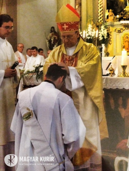 Vízi János, a római Pápai Magyar Intézet növendéke egy zsoltáridézetet választott papi jelmondatául: „Uram, én a te szolgád vagyok.” (Zsolt 116,16) A szentelő püspök ebből kiindulva a szolgálatról elmélkedett. A mai világban a szolgálat nem divatos magatartás, negatív képzetek társulnak hozzá: kiszolgálás, szolgalelkűség, kiszolgáltatottság. Ezzel szemben – mondta a püspök – a szolgálat az Egyházban Jézus követése, aki „nem azért jött, hogy neki szolgáljanak, hanem hogy ő szolgáljon, és életét adja mindenkiért” (Mt 20,28). A pap személyén keresztül Jézus újra kimondja az Atyának, hogy „Értük szentelem magam” (Jn 17,19).