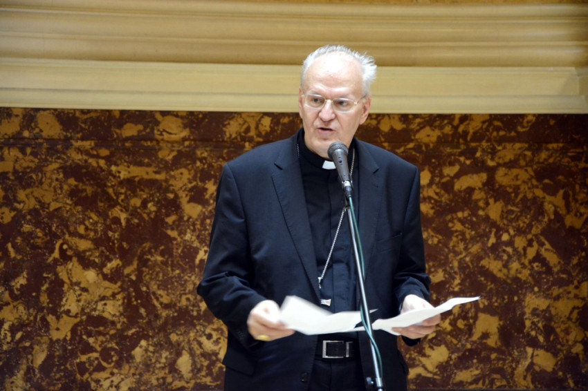 Megnyitóbeszédében Erdő Péter bíboros, esztergom-budapesti érsek hangsúlyozta, külön öröm számára, hogy a Ferenc pápa által meghirdetett irgalmasság évében nyithatja meg a szakrális művészetek rendezvénysorozatát. Mint mondta, különös esztendő az idei többek közt azért is, mert alkalmunk van eszmélődni a művészetek és az irgalmasság kapcsolatáról. Ha a bibliai örökséget és az egyház hagyományát vallatjuk, az irgalmasság cselekedetei között találunk olyanokat, hogy szomorúakat vigasztalni, tudatlanokat tanítani, tanácstalanoknak jótanácsot adni, tévelygőket helyreigazítani, élőkért és holtakért imádkozni. Hozzátette: az igazán nemes művészet szavakkal vagy szavak nélkül tanítja, építi az embert. Képes arra, hogy akár fogalmi meghatározások nélkül is erősítsen és vigasztaljon. A nemes művészet, a szakrális művészet felragyogtatja a látható világban és a látható világ felett jelen lévő isteni valóságot, amely értelmet, célt, értéket ad az életünknek – fogalmazott Erdő Péter.