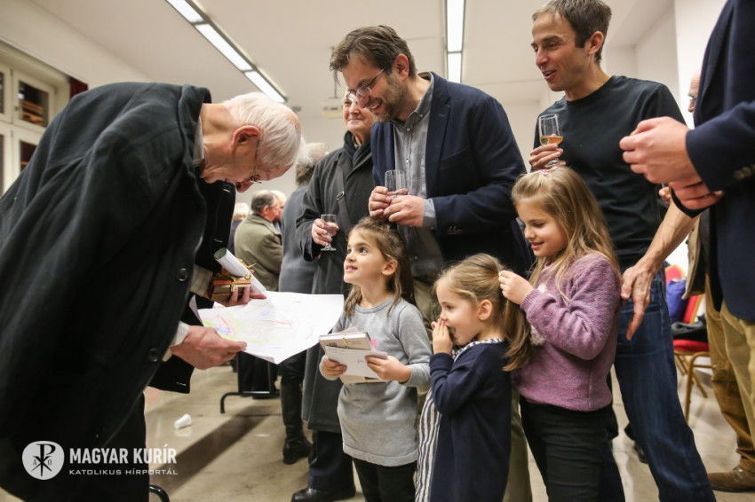 Aztán kitört az ünneplés, a gratulálók hosszú sorban álltak Jelenits atyához. Pár szót beszéltem a fiatalos Farkas Zsolttal, aki egykor az ünnepelt osztálytársa volt, és – mint szerényen megjegyezte – még csak nyolcvannégy és fél éves. A derű, amelyet a tekintetében láttam, elgondolkodtat az életkorokra vonatkozó sztereotípiáinkról. Az öröm vasárnapján mintha minden ránc halványabb lenne kissé, minden arcon.