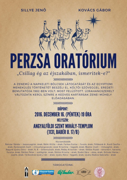 – Sillye Jenőnek és Kovács Gábornak volt egy nagyon termékeny időszaka a hetvenes-nyolcvanas években, amikor több nagyobb lélegzetű zeneművet alkottak meg együtt, így a Kristályóriást, a Jöjj, Lángoló!-t, a Keresztutat. Abban az időben a kőbányai Szent László-templom ifjúsági énekkara – köztük klasszikus szimfonikus hangszereken játszó zenészek – csatlakozott a Jenő által vezetett újpesti kórushoz. A Perzsa oratóriumot 1982-ben mutatták be, és az együttes tagjainak emlékei szerint lehetséges, hogy többször nem is adták elő. Valóban, egy kicsit elfeledett darabja Sillye Jenő és Kovács Gábor életművének, olyannyira, hogy a kottája sem volt meg. Ezért hangfelvétel alapján kellett rekonstruálni és modernizálni, újragondolni különböző hangszerek beemelésével.