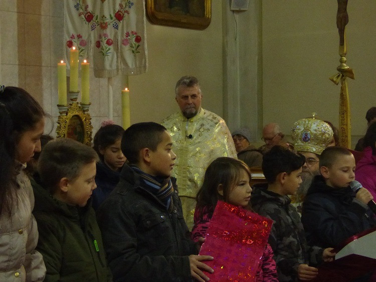 A Szent Liturgia elején a Szent Péter Görögkatolikus Általános Iskola diákjai rövid műsorral köszöntötték Szent Miklóst.