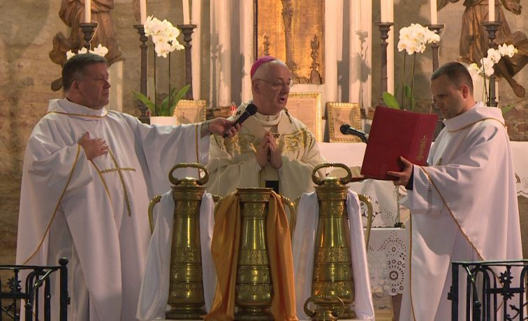 A szentbeszéd után a jelenlévő lelkipásztorok megújították Ternyák Csaba egri érsek előtt papi ígéreteiket. Ezt követte az olajszentelés szertartása.