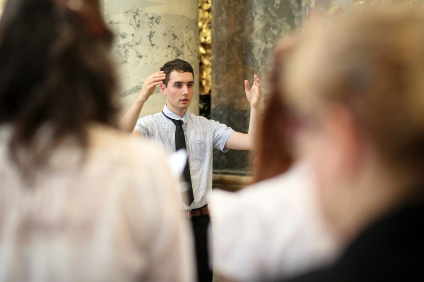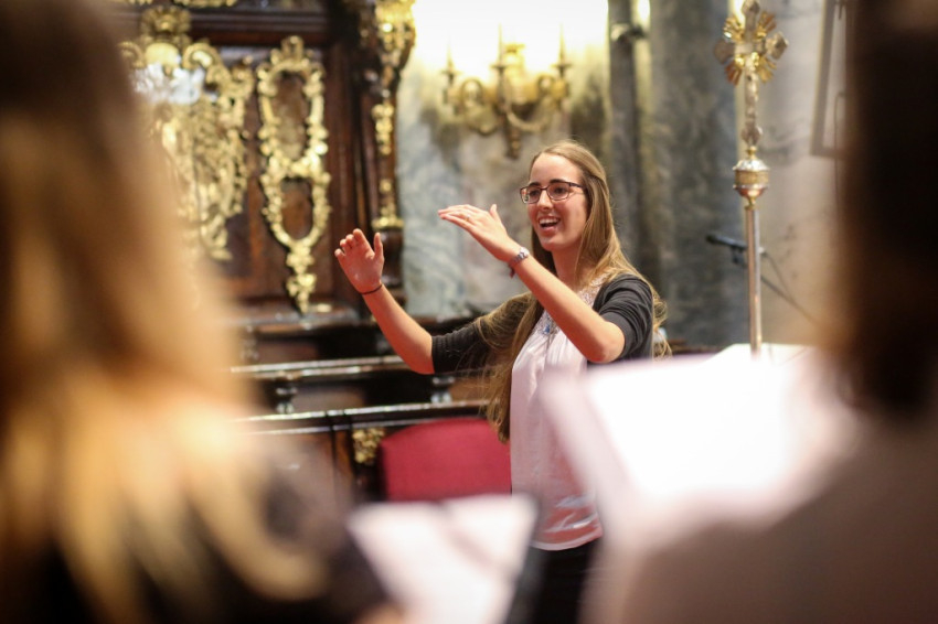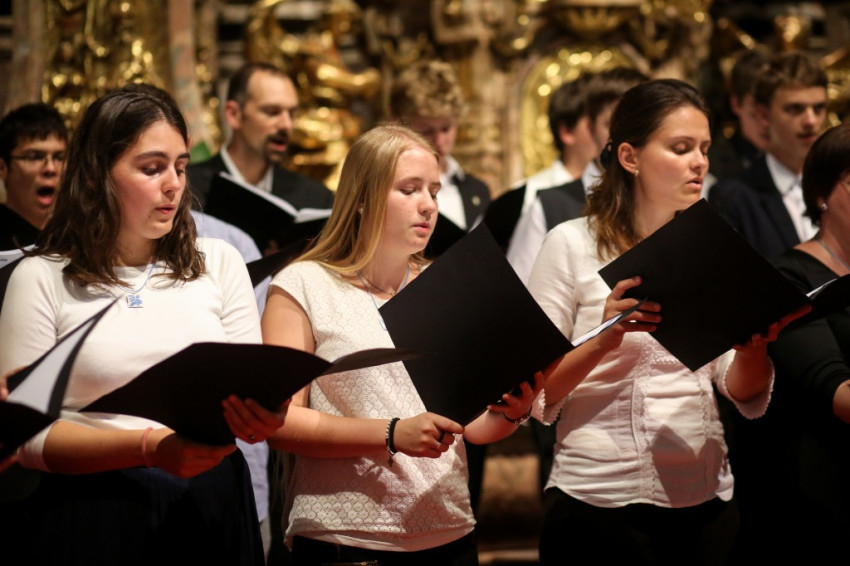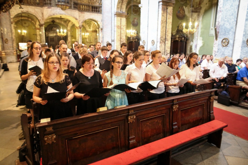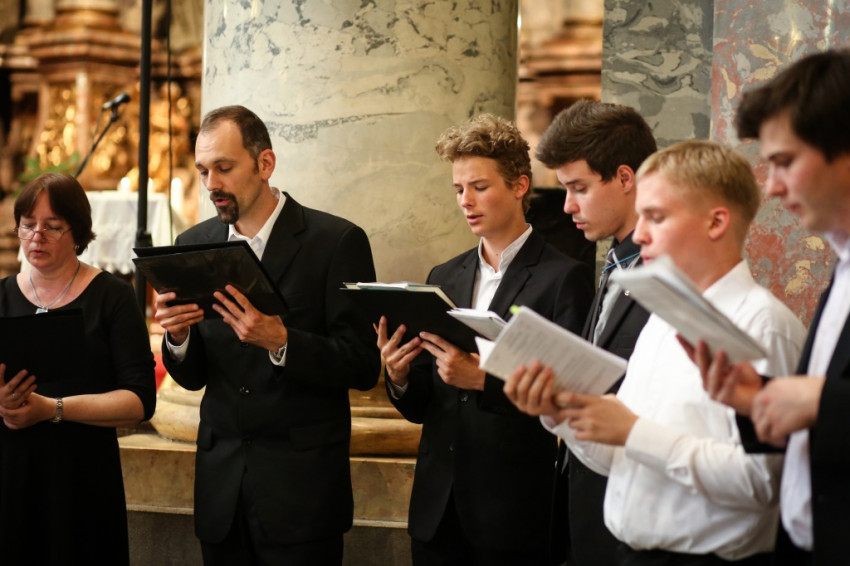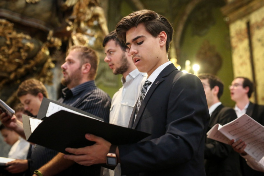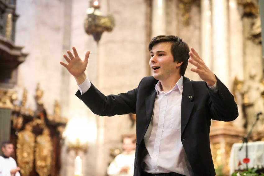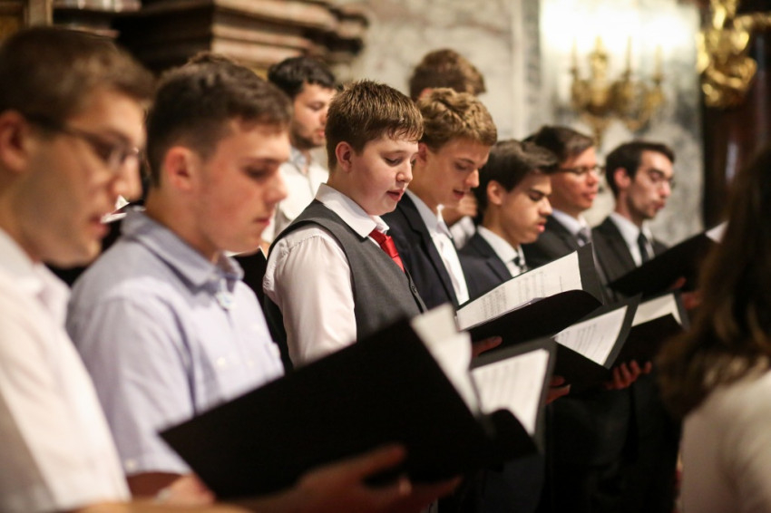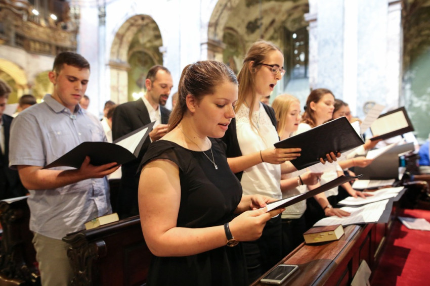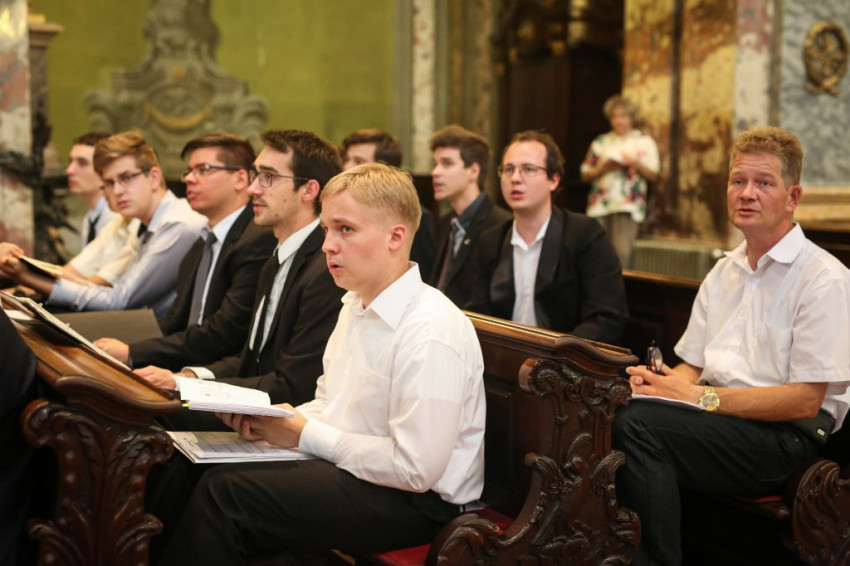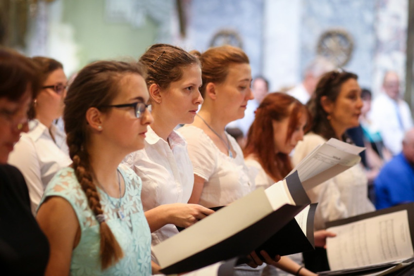 A misében felhangzó művek mind Gounod művei, aki, mint az igazgató, Horváth István megemlíti, kétszáz éve született. Minden zeneszám címét kivetítik, és azt is megtudjuk, mikor melyik növendék vagy idén végzett kántor vezényel, orgonál.
