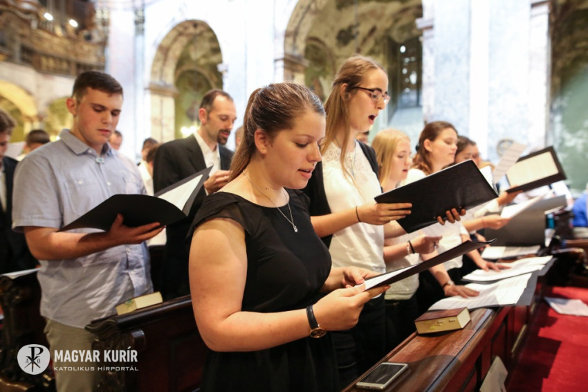Gregoriánnal: egy szűkebb kórus kiválásával és a többi kántorképzős énekes válaszaival kezdődik a mise. Beer Miklós, az Országos Magyar Cecília Egyesület elnöke első szavaival arra kéri a résztvevőket, hogy adjanak hálát a tehetségükért és a kiválasztottságukért. Mint ahogy annak idején a szemináriumban e mondat alapján ő megélte a papságra készülését: „Esélyt kapsz, hogy esélyt adhass.” A kántor is a Jóistenhez segít közelebb kerülni, mint a pap.