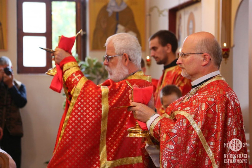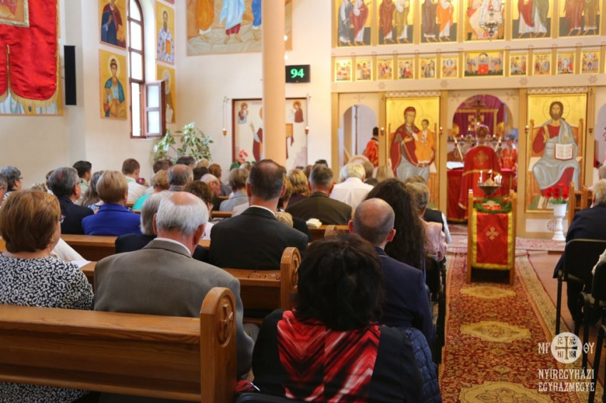 Obbágy László parókus azért idézte fel a templom egyik táblaképén is látható ószövetségi jelenetet, mert ilyen támogató szeretetet érez és élvezhet már tizenöt éve itt, a huszadik születésnapját ünneplő Nyíregyháza-kertvárosi Görögkatolikus Egyházközségben, és hálás szívvel köszönte meg a templom ünnepi Liturgiáján a híveknek a sok-sok munkát, odafigyelést, a ráfordított energiát és az imádságos alkalmakat. „Mindenért Istené a dicsőség – mondta –, de az emberek munkáját értékelni örömteli kötelesség.” Az ikonosztáz keresztjének kerámiaplakett változatát akasztotta mindazoknak a nyakába, akiknek érdeme van abban, ahogyan ez a közösség működik.