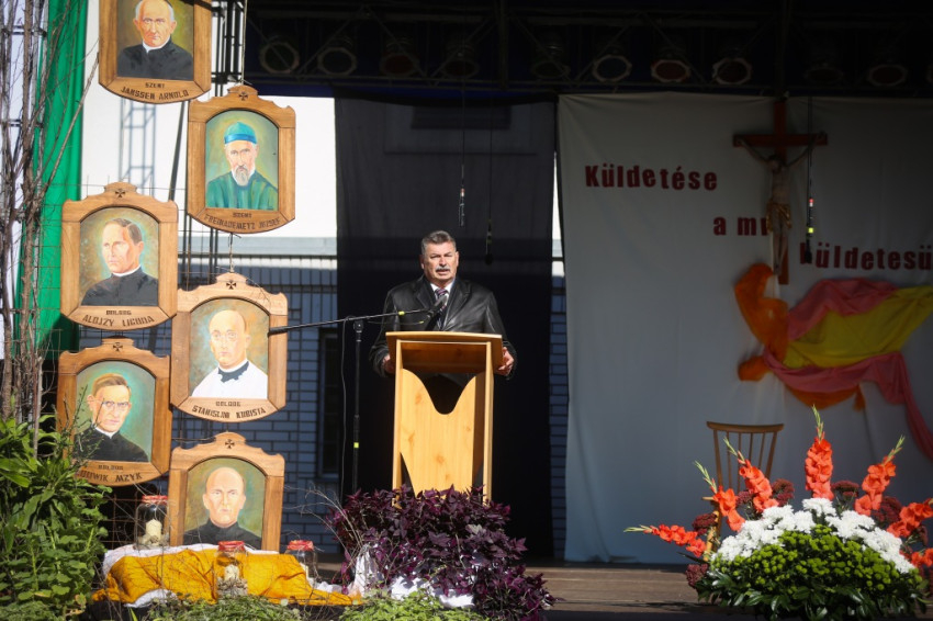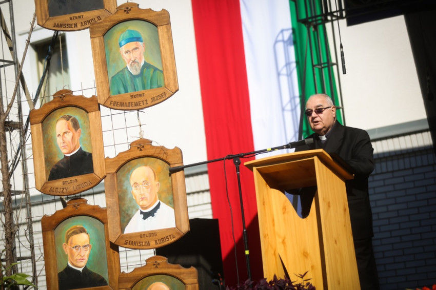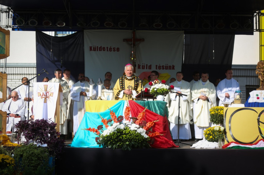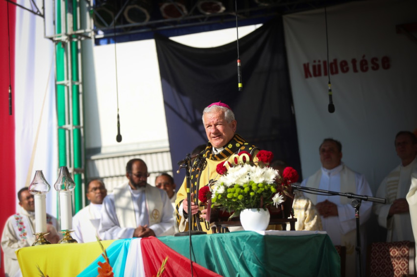 A nap zárásaként Kiss-Rigó László, szeged-csanádi megyéspüspök mutatott be szentmisét a szerzetesrend tagjainak koncelebrálásával. Kiss-Rigó László a mise prédikációjában – Szűz Mária, Magyarok Nagyasszonya ünnepére tekintettel – Mária példájára hívta fel a figyelmet, amellyel Isten akaratát kereste az életében. Isten a történelem ura – tette hozzá –, és fordulatos módon irányítja az életünket. Így volt ezzel Szent Gellért is, aki a Szentföldre indult, de hajótörést szenvedett, így végül Magyarországra került. És így voltak a sokféle hányattatást megélő verbiták is, akiket az Úr hosszú évtizedek után újra Magyarországra hívott. Ők pedig meghallották a hívását, és elfogadták az akaratát.