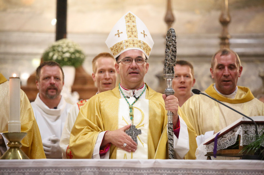 Kezdődik a szentmise. Marton Zsolt püspök az óriási asszisztencia, a diakónusok, lektorok, akolitusok és jelöltek hosszú bevonulása után elmondja, mekkora öröm a számára, hogy püspökként szent szolgálatba lépőket avathat. És nemcsak az ő számára, hanem a családok, az egyházközségek, az egyházmegye és általában az egész egyházi közösség számára is. A főangyalok ünnepének vigíliáján kérjük ma ehhez az angyalok támogatását, teszi hozzá.