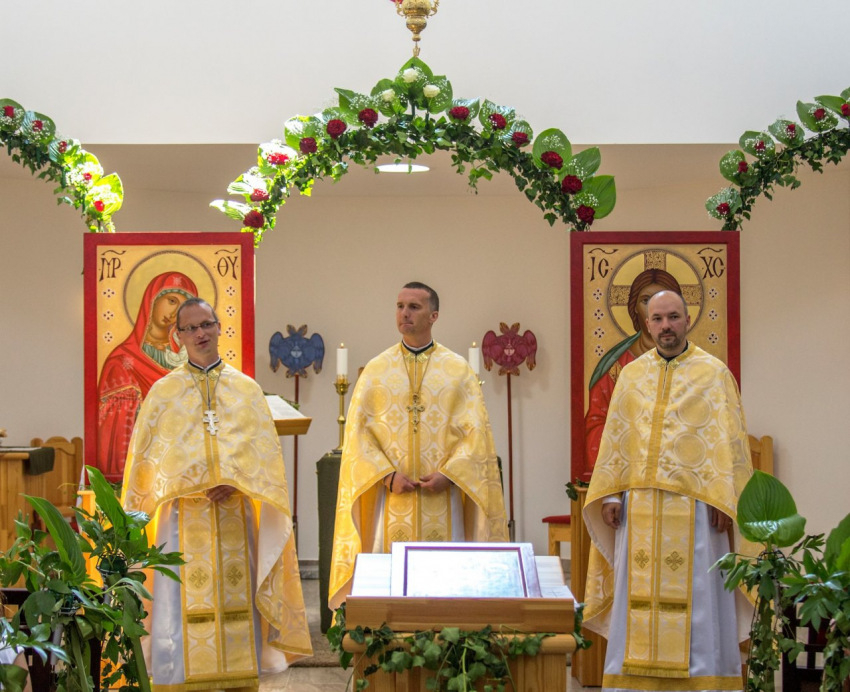 A Szentháromság tiszteletére szentelt, tízéves templomban az új élet szimbolikus színe, a zöld szép csokrokból köszönt vissza a padsorok és az ikonosztázion mellől – derül ki Szender Adrienn összefoglalójából.