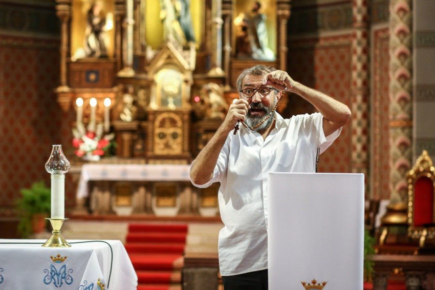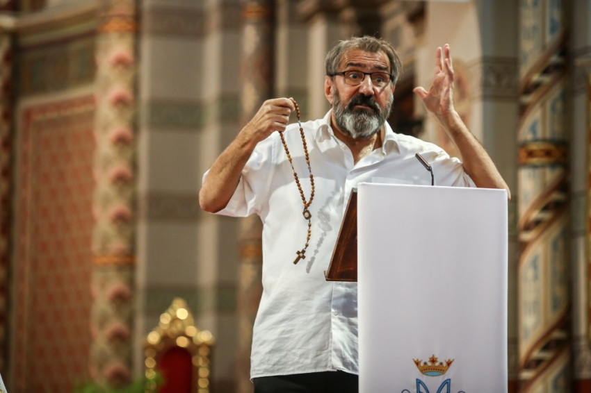 A rózsafüzérről szólva Eperjes Károly hangsúlyozta, hogy az nem más, mint „üdvtörténet, tökéletes teológia, amely minden titkot átelmélkedik, és az eucharisztiára nevel”. A színművész arról is beszélt, hogy a Szűzanyát nem szabad imádni, de nagyon kell szeretni, ő többek közt példa arra is, hogy benne megvalósult a szív és az agy harmonikus egysége is, ahogy azt az angyali üdvözlet evangéliumi szövegéből is láthatjuk.