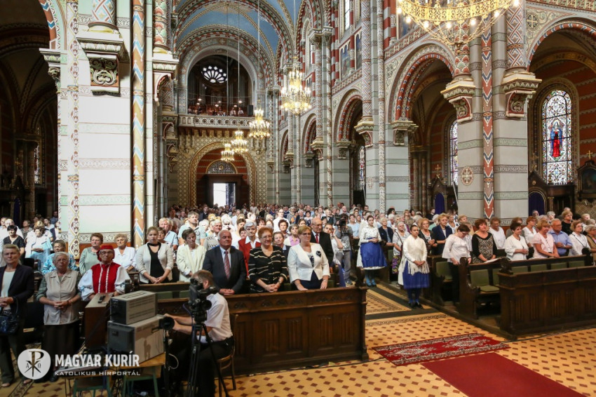 1. Nagy szeretettel köszöntök mindenkit, aki a Magyarok Nagyasszonya nevét viselő plébániákról hozzánk érkezett a mai ünnepre. A Boldogságos Szűz Máriát, mint hazánk pártfogóját, a művészet és az irodalom már évszázadok óta kifejezetten is említi, a hívő emberek pedig mint hazánk védasszonyához könyörögnek hozzá. Pázmány Péter imádságos könyvében a Szűzanyához fordulva kéri, hogy szabadítsa meg és vezesse az igaz hitre a rábízott magyarokat. A XVIII. században pedig elterjed a Boldogasszony Anyánk, régi nagy Patrónánk kezdetű ének, amely szinte a nemzeti himnusz szerepét töltötte be. Eszterházy Pál nádor is meg volt győződve arról, hogy Szűz Mária közbenjárása végigkíséri népünk történetét. Harmonia Coelestis c. munkájában külön imádságot találunk a Magyarok Nagyasszonyához. Felajánló imáját – modernebb változatban – minden évben augusztus 20-án ünnepélyesen megismételjük. De a Magyarok Nagyasszonya elnevezés megtalálható már abban az 1661-ben megjelent munkában is, amely a máriavölgyi kegyhelyen történt csodás gyógyulásokat gyűjti össze . A török alóli felszabadulást pedig, különösen Buda visszafoglalását (1686) és a zentai csatában aratott győzelmet, egyértelműen a Boldogságos Szűz Mária közbenjárásának tulajdonították. Ezért I. Lipót császár és király hazánkat 1693-ban ismét felajánlotta Szűz Máriának, követve ezzel Szent István példáját. Lipót király pénzein is megjelenik a Szűzanya, mint Szeplőtelen Szűz Mária, Isten Anyja, Magyarország Pártfogója. Így jutunk el ahhoz a bensőséges kapcsolathoz, amely a Magyarok Nagyasszonyának és a bűn nélkül fogantatott Szűzanyának a tisztelete között fennáll.