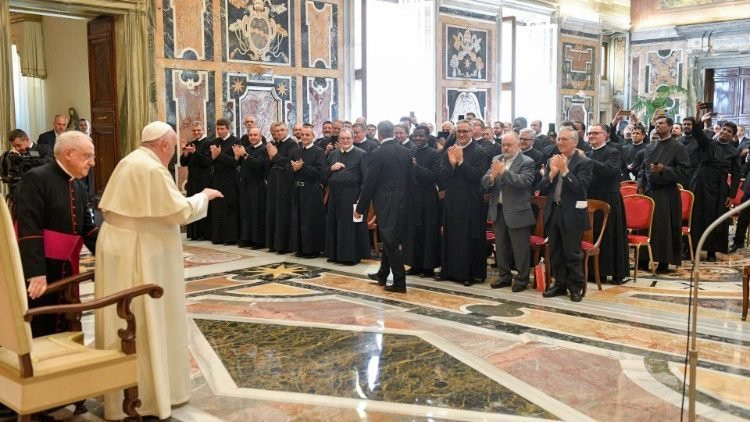 Az evangelizáló testvériségre is ráirányította a szerzetesek figyelmét Ferenc pápa. „Evangelizálás, testvériség, öröm” – ezeket a szavakat többször elismételte az audiencián. „Az öröm ragadós, a szentek öröme, akik nem születtek alapítóknak. Azzá váltak, mert Krisztushoz vonzották az embereket. Nem önmagukhoz, hanem Krisztushoz, ez fontos különbség. Alázat, egyszerű szív és öröm: ez az evangelizáló testvériség útja. Lehetetlen az emberek számára, de nem Istennek!”