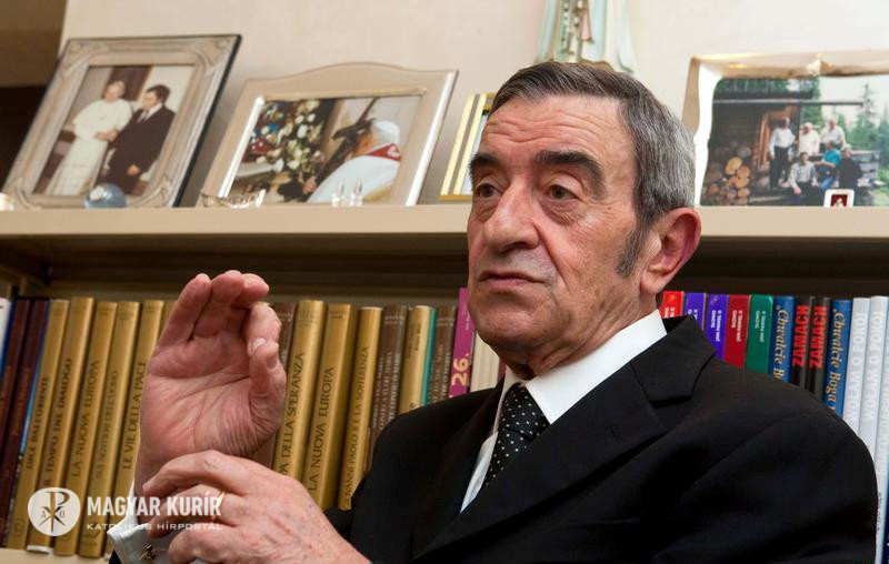 Ő nem hanyagolt el semmilyen területet, az imádságtól, a kemény munkától kezdve az emberek iránti szeretetig és addig az óriási szenvedésig, amelyben a legnagyobb példát mutatta. Az utolsó percig a közelében voltam, már eléggé szenvedett, és minden fájdalma ellenére − ami látszott rajta −, ő imádkozott. Sohasem hallottam, hogy felszisszenne, vagy hogy „jaj, rosszul érzem magam”, egy cseppnyi panaszkodást sem, soha! Ez a nagy karizmája ennek az embernek. Ez megérint bármelyikünket, itt nincsenek szavak, jelzők, amivel meg lehetne határozni ezt az embert. Mi vagyunk a tanúi, egészen élete utolsó pillanatáig. Halálos ágyán, amikor a fiatalok a térről hozzá kiáltottak, már félig elszunnyadva megszólalt: „Hozzám jöttek, eljöttek, hogy üdvözöljenek.” Mit lehet ehhez hozzáfűzni? Lehet-e még bármit mondani? Az embernek könnybe lábad a szeme.