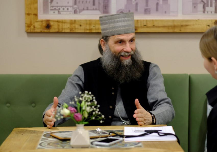 – A keleti egyházban minél nagyobb dologról van szó, annál jobban elrejtjük. Nálunk az úgynevezett szentségimádás, az Eucharisztiában jelen lévő Krisztus megvallása a legrejtettebb módon történik. Úgy hozzuk ki a szentélyből, hogy letakarjuk, miközben senki nem néz fel. Így alakult ki, hogy Istenről csak olyat mondhatunk, ami szinte tagadás. (...) amikor azt mondom az Úrra, hogy „kimondhatatlan, megfoghatatlan, láthatatlan”, akkor helyesen fejezem ki magam. A liturgiánkban is gyakran használjuk ezeket a kifejezéseket: kifürkészhetetlen, felfoghatatlan – így fejezzük ki a hódolatunkat. Az Eucharisztiához mindig a legmélyebb bűnbánattal közelítünk, sokszor a földre borulunk, tömjénezünk az oltárra elhelyezett Eucharisztia előtt.