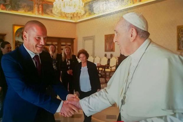 Miután körbevezették őket az épületben, az Apostoli Palotában fogadta őket Ferenc pápa, abban a szobában, ahonnan kilép az erkélyre az Úrangyalát elimádkozni. „Hihetetlen! Fogadott és meghallgatott minket, beszélt hozzánk és együtt imádkoztunk.” Valerio egy dobozban ápolók és betegek leveleit vitte magával, melyekben leírják, mit éltek át, valamint két kórházi köpenyt, egyet Comóból, egyet Luganóból.