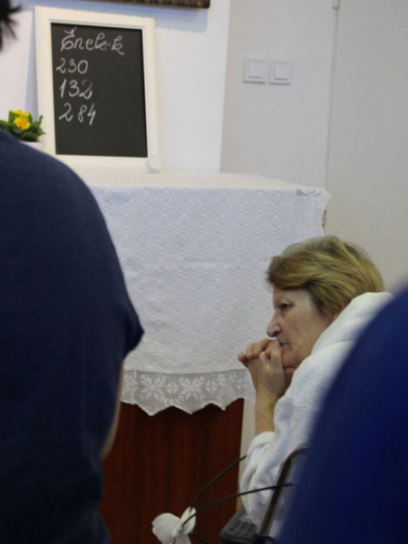 A szentbeszéd után ennek a szentségnek a kiszolgáltatása sokunkat megrendített – öröm volt tapasztalni, hogy Jézus által a beteg emberhez is elérkezik a kereszthordozás mintája, ereje. És egy idő után a sötétség mélyére a fény is besüt, ha hinni tudunk benne, és egymás szeretetteljes támaszai, segítői is vagyunk.