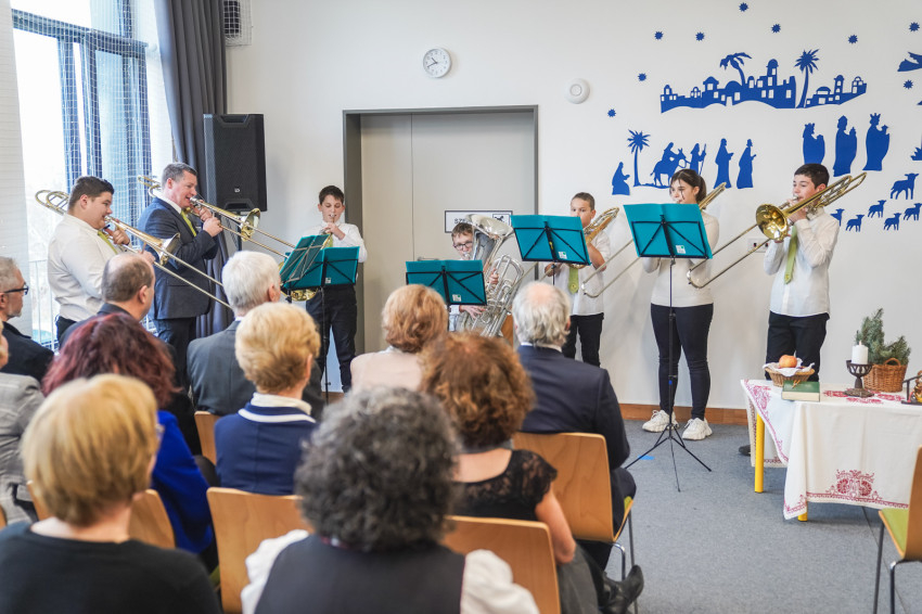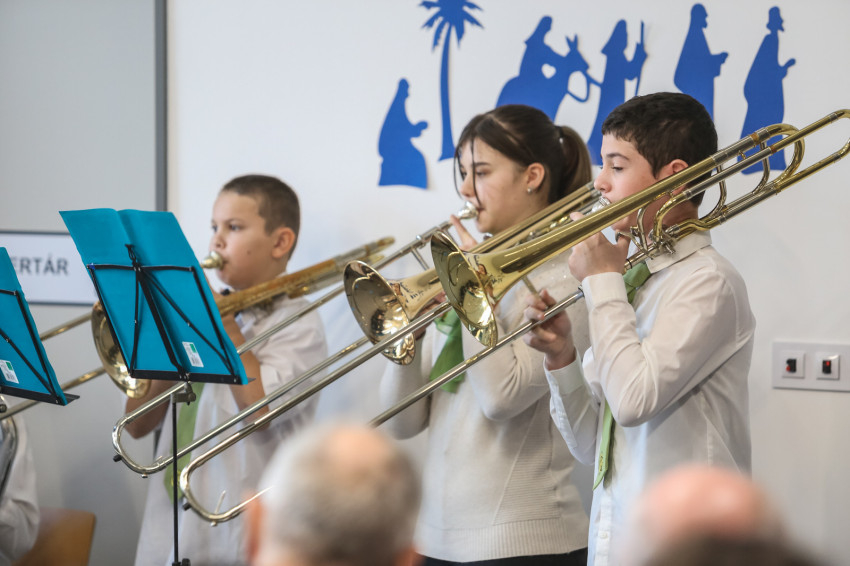 Az ünnepi eseményen közreműködtek a Nagyboldogasszony Iskolaközpont „Rézangyalai”, Rozina Gábor vezetésével.