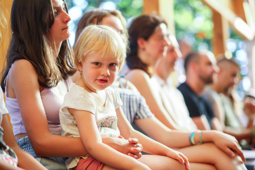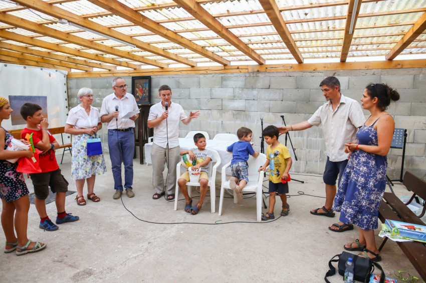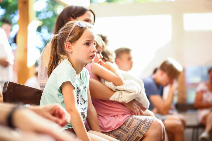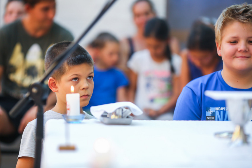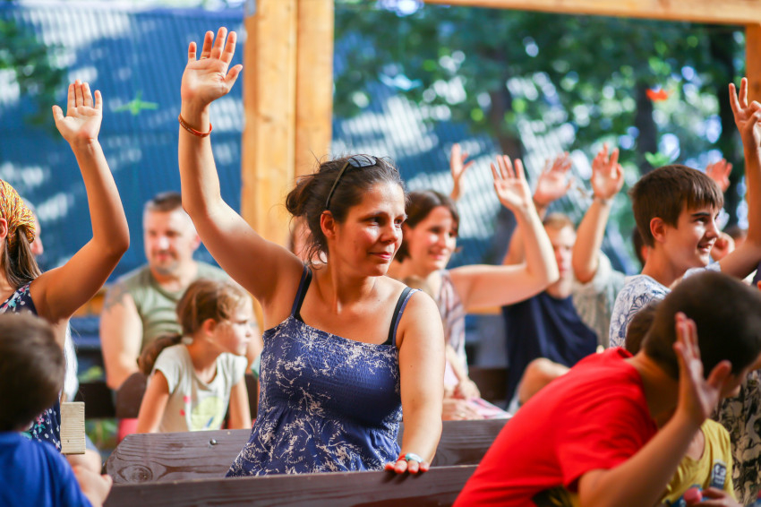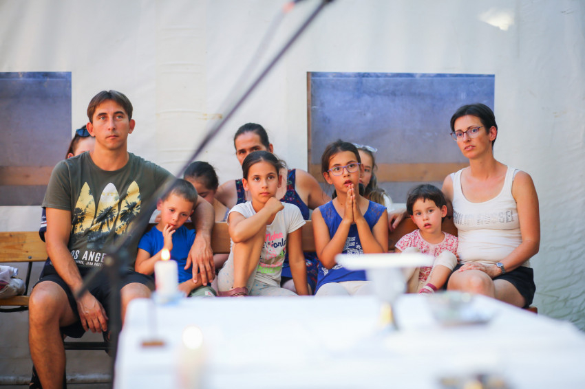 Így kezdődött az egyhetes építő és szórakoztató együttlét Pálkövén. Idén harminc házaspár és több mint hatvan gyerek nyaral. Többségük óvodás és alsótagozatos, őket fogják össze korcsoportokra bontva a kamaszok.