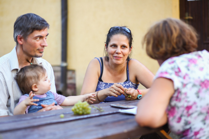 Barna és Eszter nyolc gyereket nevel. Legnagyobb fiuk a kicsiknek szervez éppen programot, a legkisebb édesapja ölében eszi a szőlőt. Jó a házaspárral beszélgetni. „Gyakran nem működik úgy a kapcsolatunk, ahogy elképzeljük. Messze nem vagyunk tökéletesek, de az jó érzés, hogy teszünk érte, és az is, hogy érzékeljük, a másik is küzd azért, hogy jobb legyen.” Talán ezért ennyire jó velük beszélgetni.