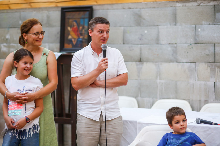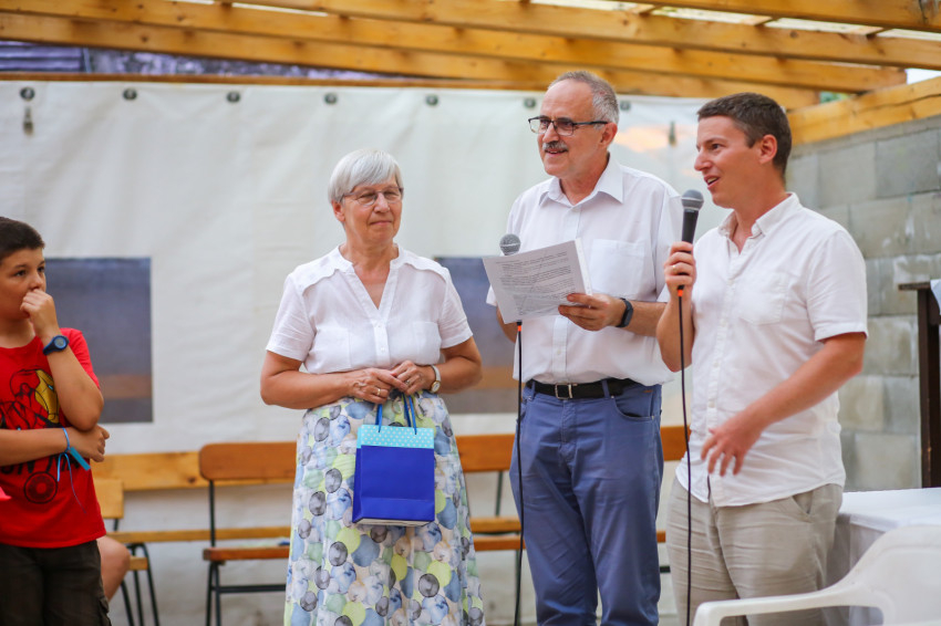 A nyári tábor vezetőváltás alkalma is egyben. Tomka Barna és felesége, Eszter 2015 óta álltak régiófelelősként az END magyar közösségei élén. Most átadták a szolgálatot Tholt Gábornak és feleségének, Mónikának. Gábor és Mónika jól eltalált ajándékkal fejezi ki a mozgalom köszönetét a leköszönő régiófelelős házaspár, valamint nyolc gyerekük felé: a szülők a közösség puzzleképét és pihentető utazást, a gyerekek két vödör nutellát kapnak.