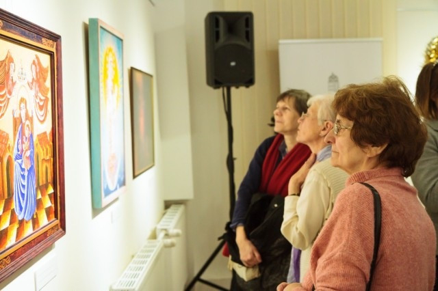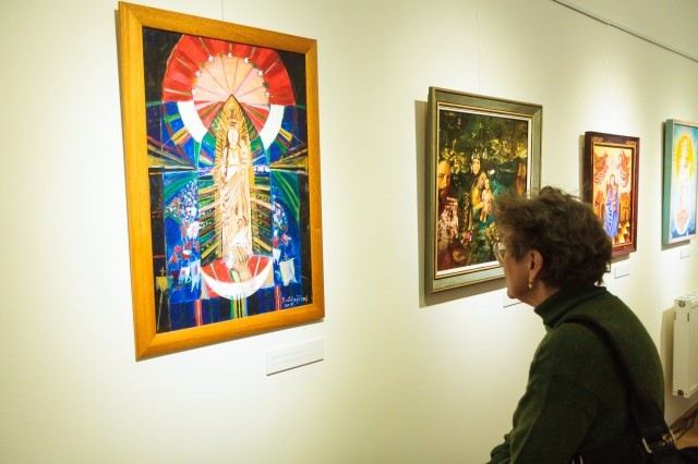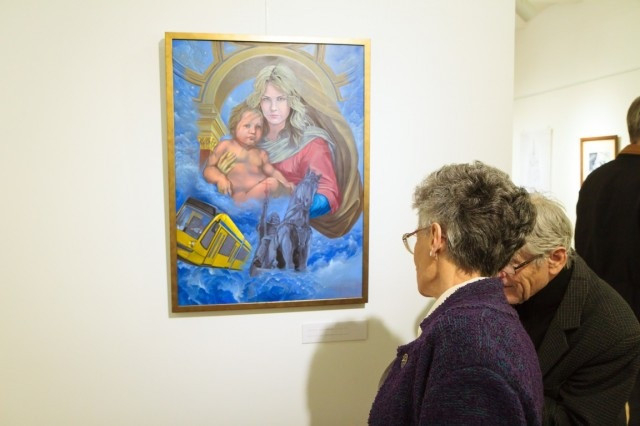A tárlatmegnyitón a kiállító művészek képviseletében jelen volt Molnár János festőművész, grafikusművész, akinek Szűz Mária a gyermek Jézussal című festménye látható a válogatásban. A kiállításon többek között megtalálható B. Raunio Maria festőművész, Cseh Tamás zeneszerző, előadóművész, Jankovics Marcell grafikus, filmrendező, Makovecz Imre építész, Melocco Miklós szobrászművész, Móser Zoltán fotóművész és Petrás Mária keramikusművész alkotása.