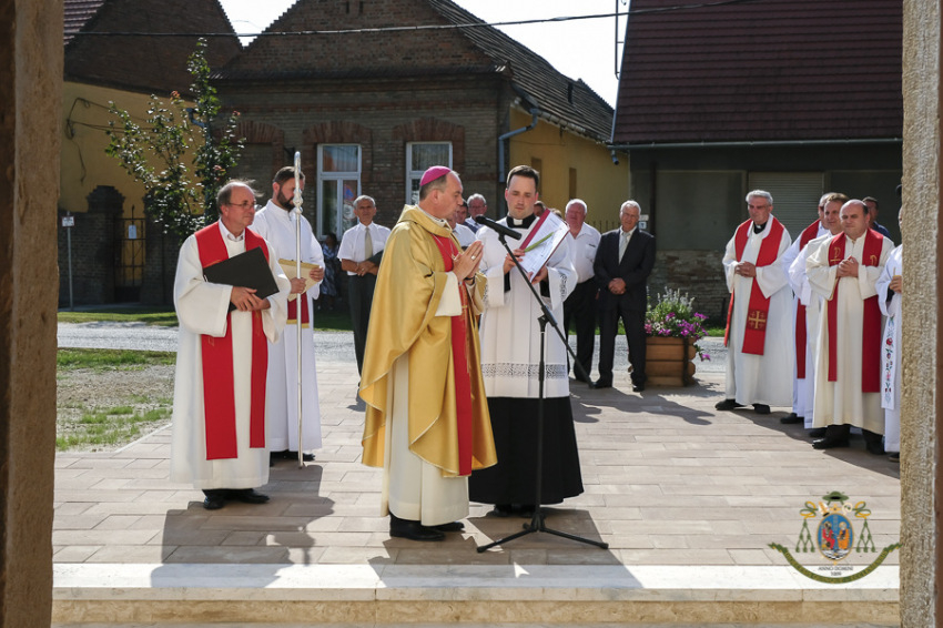 Amikor kérjük az Úr áldását az elvégzett munkájára, azt is kifejezzük, hogy minden, amit kapunk, az ő áldása miatt ajándék számunkra. Köszönetet mondunk elődeink hitéért is, a háromszáz évvel ezelőttiekért, a közben itt élt elődeinkért és mindazokért, akik bármit is a templomért tettek – fogalmazott a búcsúi szentmise kezdetén Udvardy György püspök. Kiemelte: „A templom Isten hajléka, szent hely, de egy közösség számára egy biztos pont, a reménységnek a jele. Amikor egy ilyen gyönyörű templomot megújítunk, akkor hisszük, hogy adózunk a múlt előtt is, de sokkal inkább a jövőt építjük, ahogy a plébánia védőszentje, Szent Lőrinc tanít bennünket” – mondta a főpásztor. Bevezető szavai után a kinevezett veszprémi érsek megáldotta a híveket és a megújult templomot.