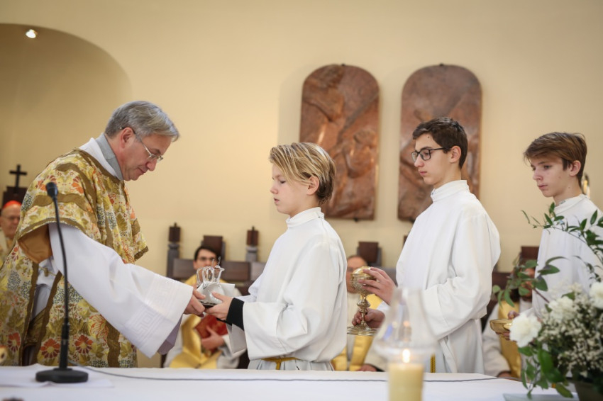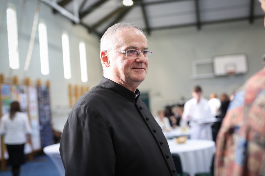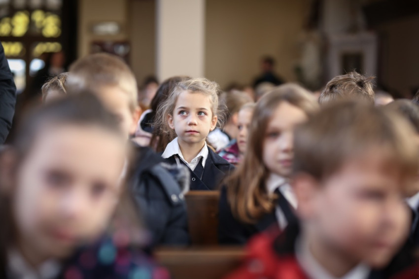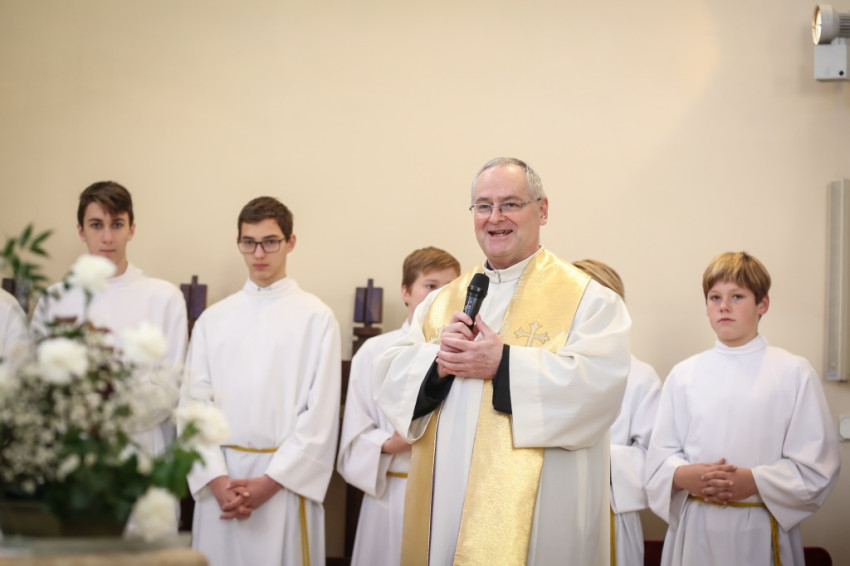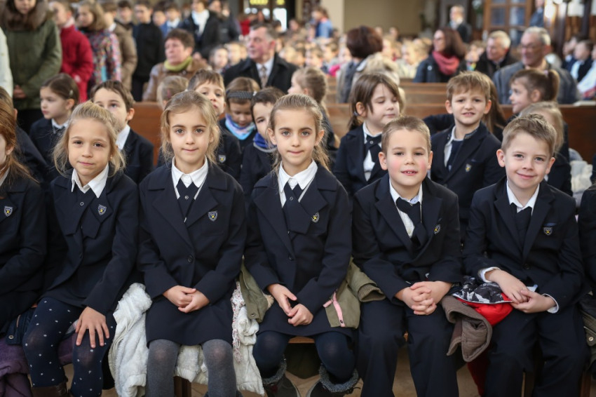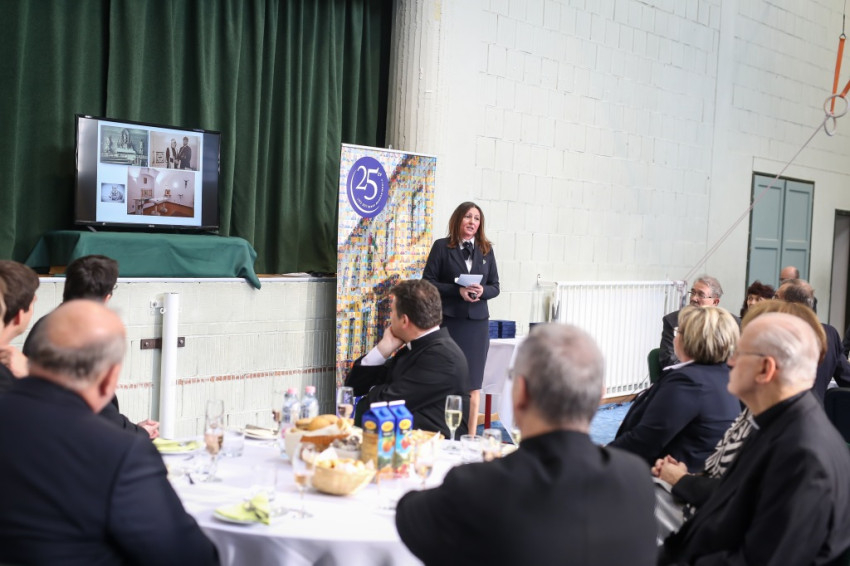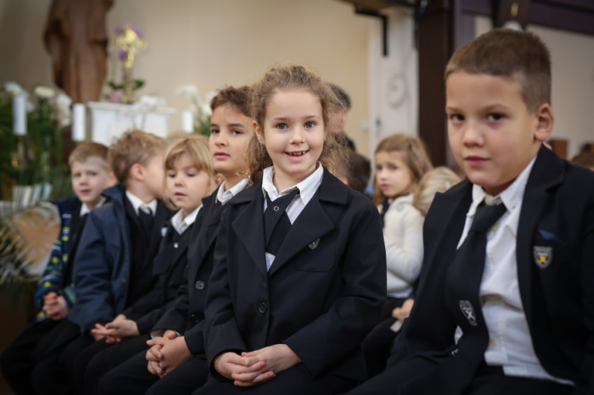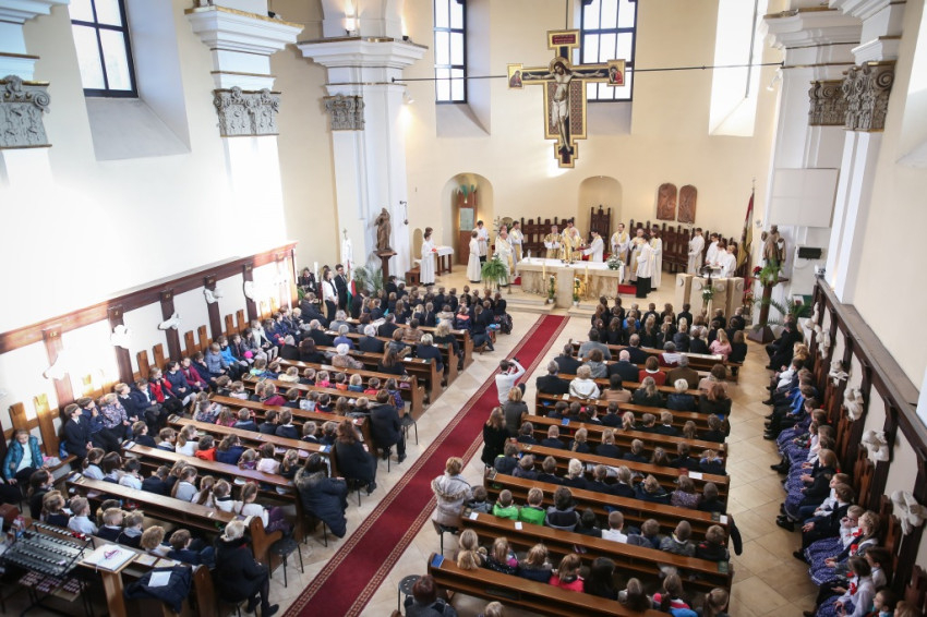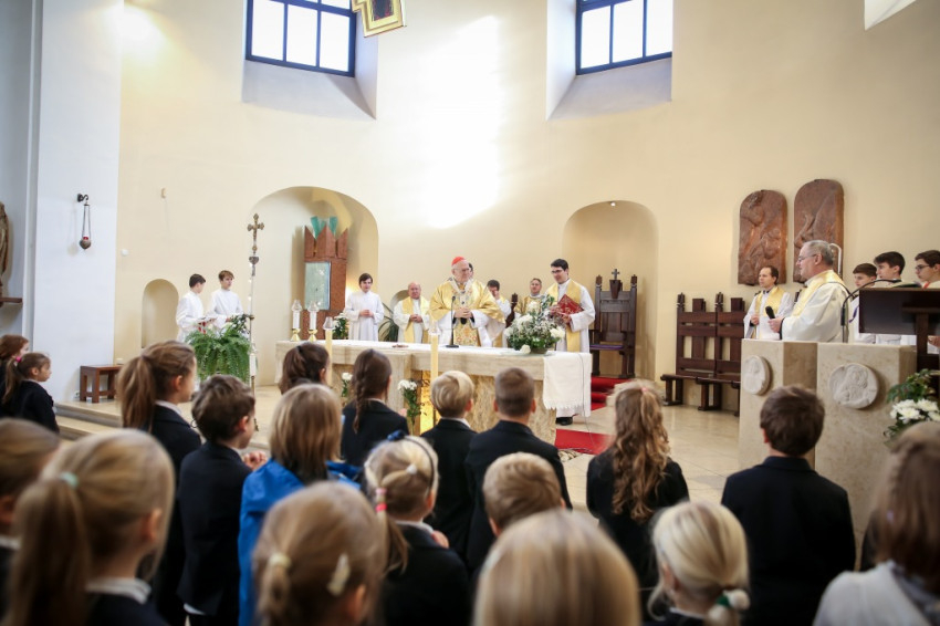 – Ünnepi izgalommal állunk itt – mondja Blanckenstein György plébános a bevonulás után –, hiszen huszonötödik jubileumot ülünk ma, amely egy ember, de még egy iskola életében is nagy idő. Megtiszteltetés, hogy bíboros úr eljött közénk örömünkben osztozni.