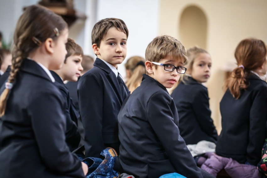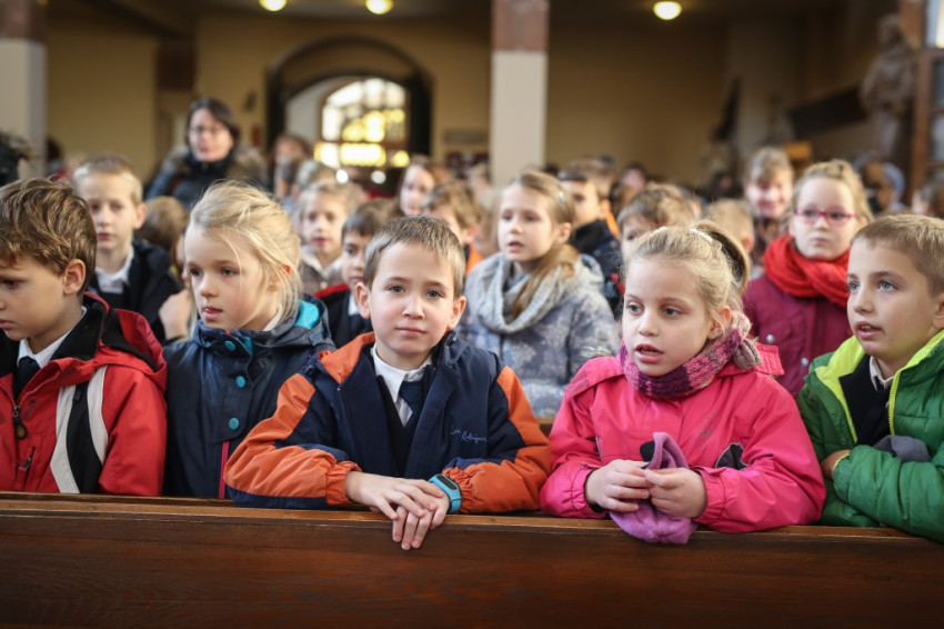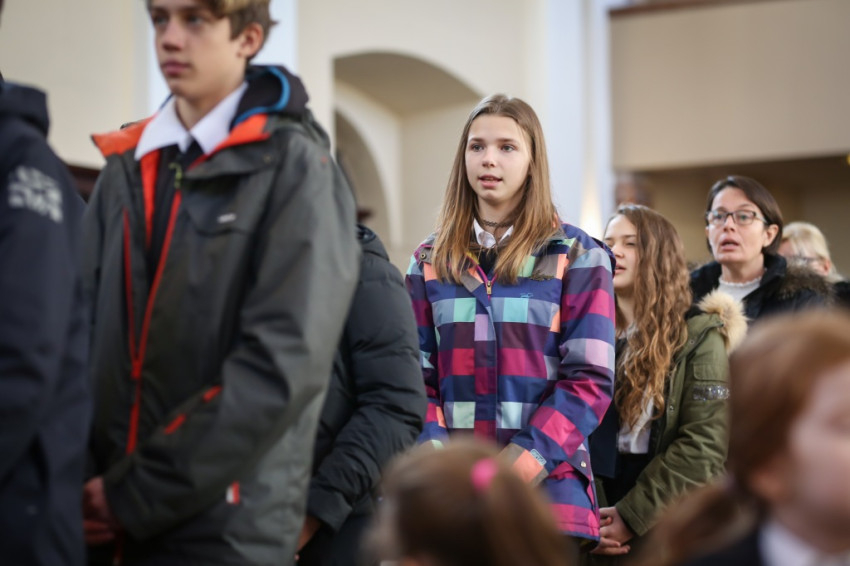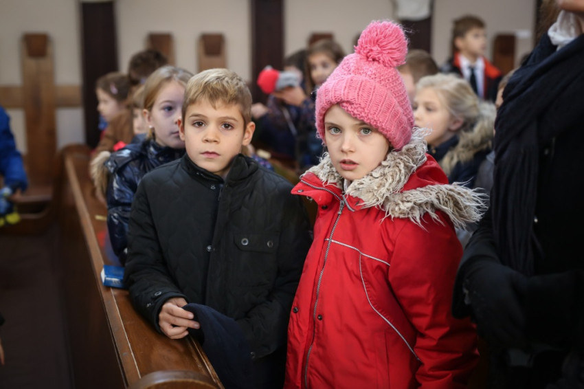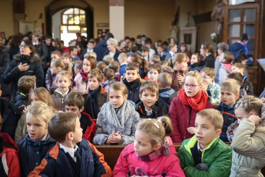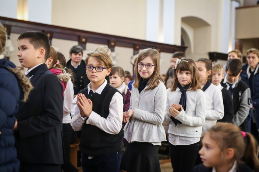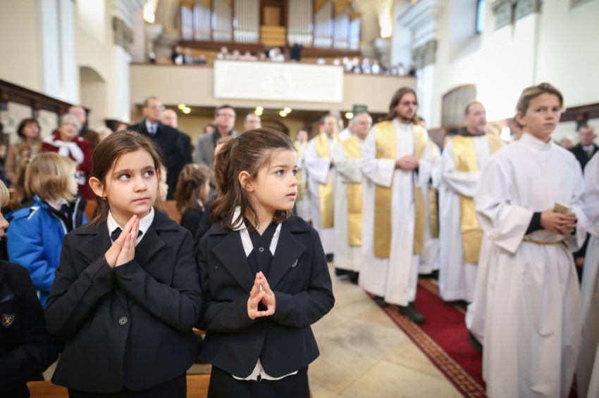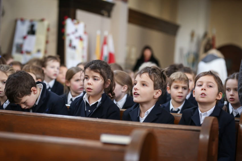 Verőfényes, „nyár a télben” idő van; kerülővel, a vakító víztükrű Dunában gyönyörködve sétálok a Szent Péter és Pál-templomhoz a szentendrei hévállomástól. Hosszú sorokban érkeznek a gyerekek, kitartóan szól a harang. Odabent pedig, olyan tisztán, mintha mindenki egy hatalmas angyalkórus tagja lenne, Taizé-dalokat énekel az iskola közössége. Nagy a megilletődöttség és a jólneveltség: a padok mellett álló vagy ülő tanároknak nincsenek fegyelmezési gondjaik.