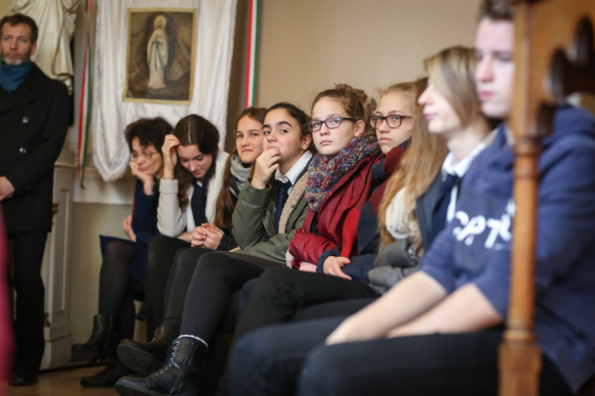 – Ön mit szeret ebben az iskolában? – kérdezem Nagy Sándor káplánt, aki két éve hittant tanít itt. – A pezsgő életet – válaszolja –, a fiatalok lelkességét, kezdeményezőkészségét. Ami nemrég például huszonnégy órás szentségimádás szervezésében mutatkozott meg. Ők maguk akarták és valósították meg, és láthatóan nagyon jól is érezték magukat tőle, „buliként” fogták fel. Az éjszakát, este tíztől reggel nyolcig a nyolcadikosok vállalták. A nagy összefogás erősítette az osztályok összetartozás-tudatát. A sok különóra miatt szükség is van az efféle programokra, amikor osztályokként, közösségként együtt lehetnek. Jó látni, hogy ennyire buzgók.