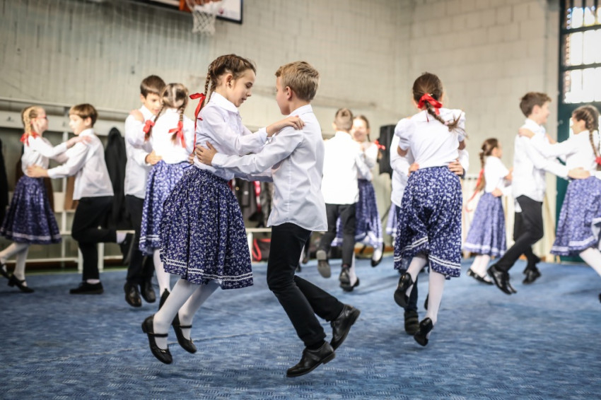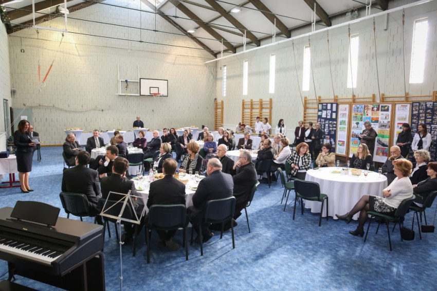 Rövid zenei produkció után, amelyet két volt tanuló ad elő, az igazgatóhelyettes, Pabeschitzné Péter Kamilla fényképeket vetít, és elmeséli az iskola történetét – az 1890-es kezdetektől az 1992-es újrakezdésig és tovább, a tagozatként működéstől az 1993–94-es önállósuláson át a felújításokig, az új szárny 2004-es építéséig, majd az azóta eltelt éveket, a pedagógiai programot, a szellemiséget. Ezután néptáncosok mutatják be tudásukat, és persze elbűvölőek nagy igyekezetükben: hol viccesen szaladgálnak, mint egy játékos tornaórán, hol úgy ugrálnak, mint a cinkék, hol meg valósággal röpködnek – a piros szalagok a kislányok hajában alig győzik őket utolérni.