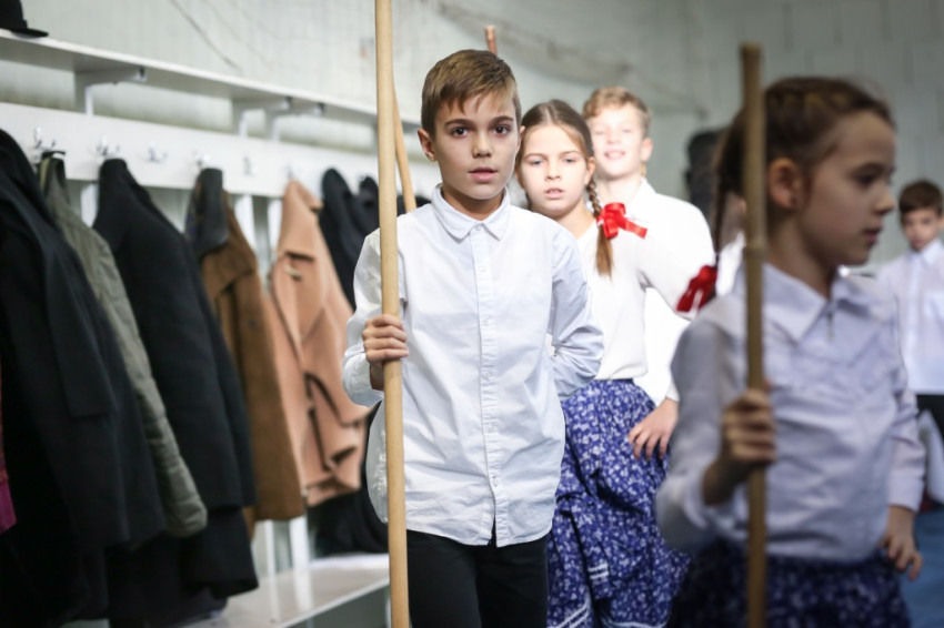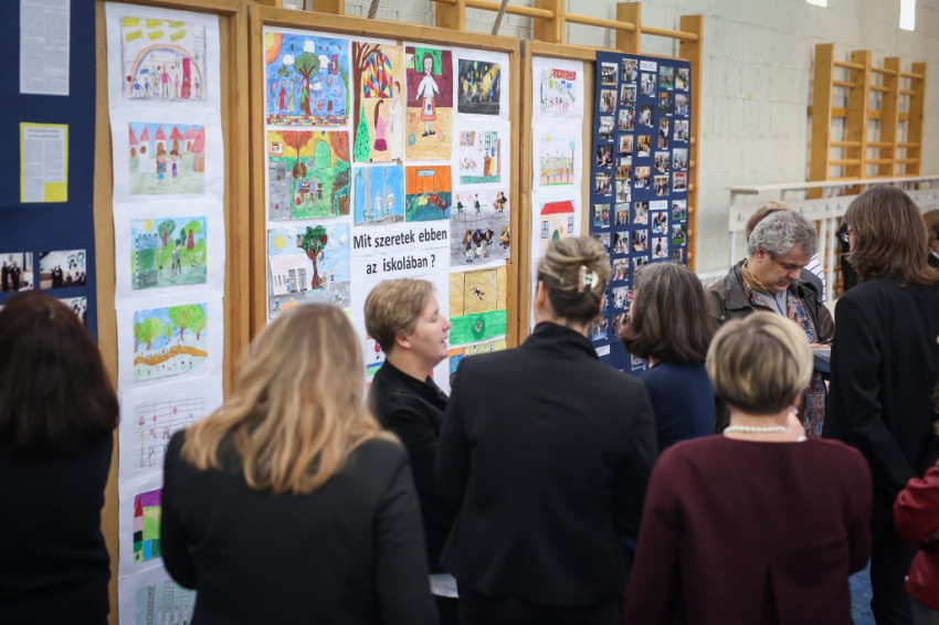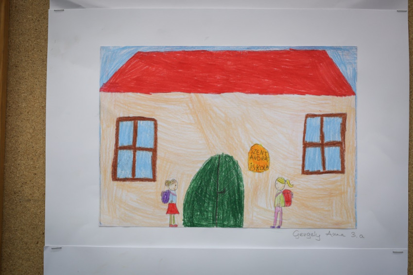 Mi pedig, miután az ünnepi megemlékezés hivatalos része lezárul, a kis kiállítás tanulmányozásába kezdünk, amely jeles pillanatokat megörökítő fényképekből, régi újságcikkekből és a gyerekek „Mit szeretek ebben az iskolában?” kérdést megválaszoló rajzaiból áll. Az egyik rajzon éppen gólt rúg egy kisfiú, miközben a kapus az ellenkező irányba vetődik, a másik képen piros, kék, lila levelű fák alatt lányok táncolnak, ugróköteleznek, egy harmadikon tábortűz ég. Mellette iskolai füzetet ábrázoló kép, amelybe alkotója ákombákom betűkkel ezt írta: „Peti ma ötöst kapott. Megörült nagyon. Anyukája megdicsérte. Juli beteg volt. Peti meglátogatta.”