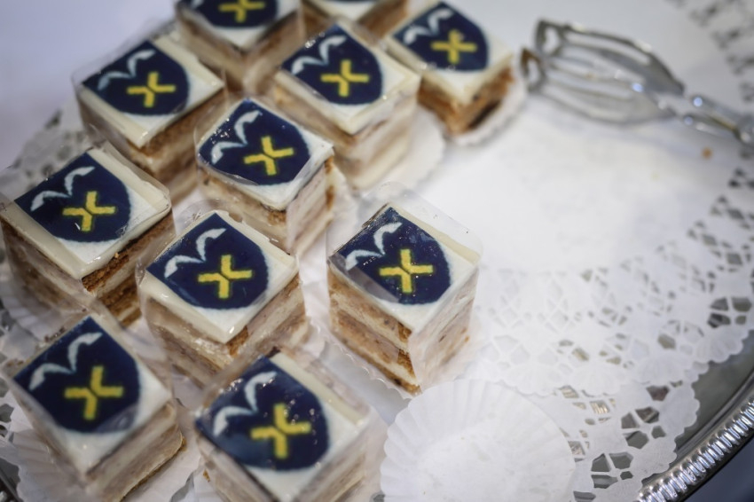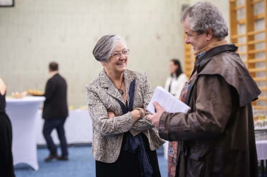 Az igazgatónő emlékérmek átadását vezeti be a szavaival: elsőként Erdő Péter bíborosnak nyújt át egy ilyet, majd még jó néhány jeles vendégnek, valamint a jelenlegi igazgatóhelyettesnek, Kamilla néninek is, akik érdemeket szereztek az iskola létrehozása, működtetése terén.