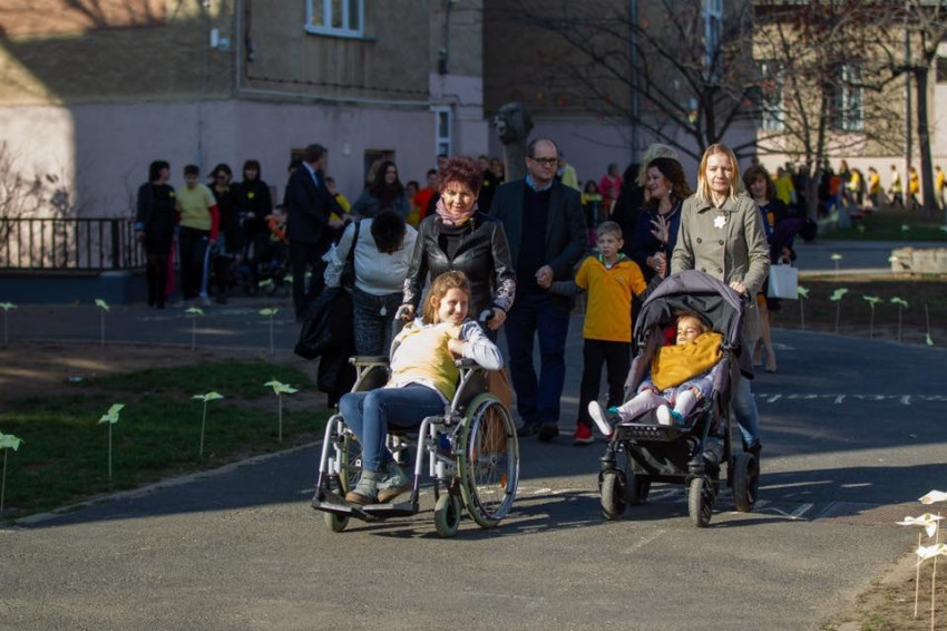 Hála, kitartás – ezeket a szavakat is felfestették arra a sárga szélforgókkal kijelölt útra, amelyen közösen sétáltak végig a résztvevők, hangsúlyozva az emberi méltóság megőrzésének fontosságát.