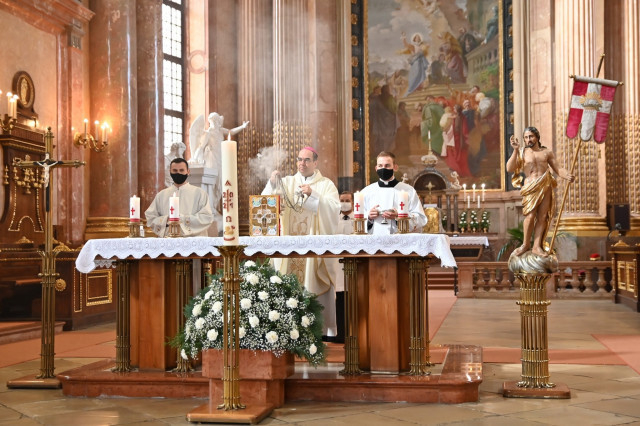 A kalocsai Nagyboldogasszony-főszékesegyházban Bábel Balázs celebrálta az ünnepi szentmisét húsvétvasárnap.