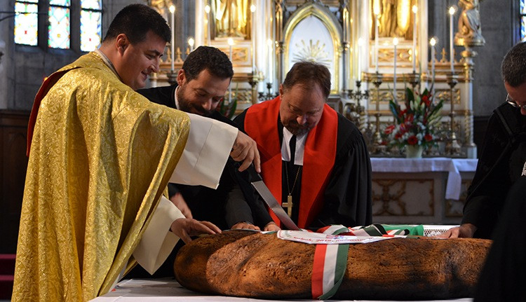 Harmadik éve a Kolozsvári Magyar Napokra is sütnek egy hasonló méretű kenyeret – ezt áldották meg és szelték meg a történelmi magyar egyházak képviselői pénteken a Szent Mihály-templomban.