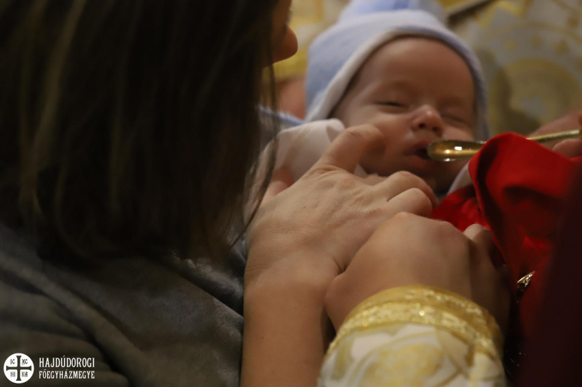 Végezetül Dalanics Zoltán hajdúdorogi parókus beszélt arról, hogy a szülők sok esetben kereszteléskor viszik először gyermeküket a templomba, ahol az élet forrását kapják meg. Amikor elkezdték bevezetni Hajdúdorogon is a kereszteléssel egybekötött szentáldozás gyakorlatát, akkor sokat beszélgettek arról a szülőkkel, hogy ez miért is fontos. Ennek eredményeképpen ma már a keresztelések több mint felénél kérik is a szülők, hogy a megkeresztelt gyermek az Eucharisztiában is részesüljön.