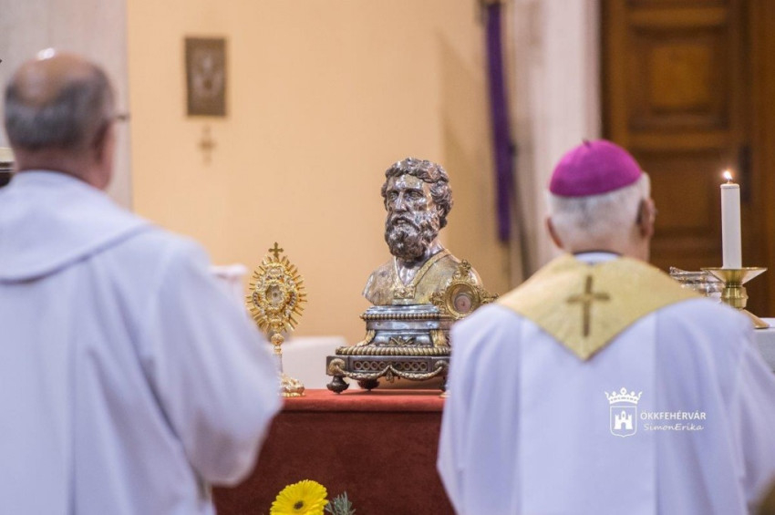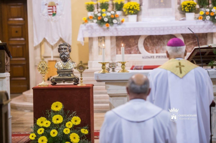 A szentmise előtt tartott imaórán a főpásztor arra kérte az ereklyéikben jelen lévő szenteket – mind az első magyar szent családot, mind a missziós kereszt szentjeit –, hogy az égben támogassák imáikkal a családokat, melyek egyre kevesebben vannak. Kérte a Boldogságos Szűz Máriát, imádkozzon értük, ahogy ezt ezer esztendőn át tette, és ezzel megmentette a magyarságot számos bajtól. A székesfehérvári megyéspüspök imádkozott a 2020-as budapesti Nemzetközi Eucharisztikus Kongresszus missziós keresztje előtt a magyar szentek és boldogok közbenjárásáért, hogy a családok igaz, tiszta keresztény életet tudjanak élni. A magyar szent család Fehérváron őrzött ereklyéi előtt fohászkodott, hogy Szent István, Boldog Gizella és Szent Imre oltalmazza a magyar családokat, és imádkozzanak mindannyiukért.