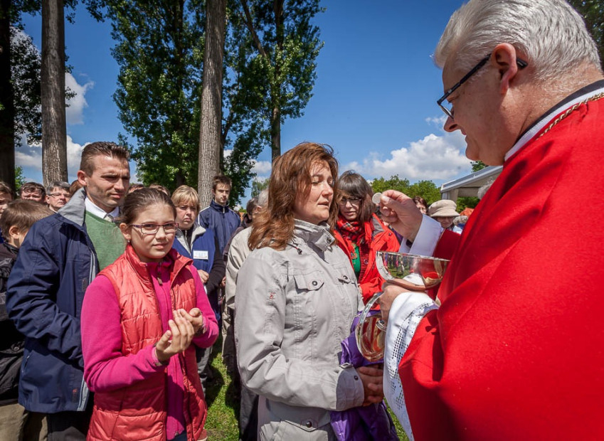 A hitet az embernek közösségben kell megélnie, ha valaki a maga hitével bezárkózva, magának élve próbál Istenhez eljutni, ez hamis út. A Szentlélek közösségbe hív bennünket, hogy együtt örüljünk egymásnak, a közös imádságnak, a gyermekek örömének, és együtt tudjunk elmélyedni az egyház tanításában. Arra hív a Lélek, hogy fedezzük fel magunkban azokat az isteni ajándékokat, amelyeket karizmáknak nevezünk, amelyekkel másokat segítünk. Sajátos módon tanúságot kell tennünk hitünkről, hogy jobbá tegyük a világot – buzdított a főpásztor.