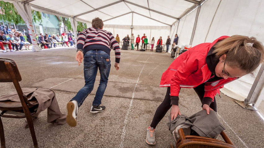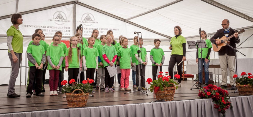 A szentmise után színpadi programokkal folytatódott a pünkösdi családi nap, melyek során bemutatkoztak az egyházmegye fenntartásában működő iskolák. A fakultatív programok között szerepelt az egyházmegyei hittanverseny is, amelynek központi témája az irgalmasság szentévéhez és a Szent Márton-évhez kapcsolódott, de nem maradtak ki természetesen a magyar szentek sem. A vetélkedő során öt szellemi és öt ügyességi játékra került sor, ezek között szerepelt például egy beteg ellátása, valamint Szent Erzsébet kenyerének kiosztása az éhezők között, játékos módon – mondta el Visyné Farkas Katalin szervező.