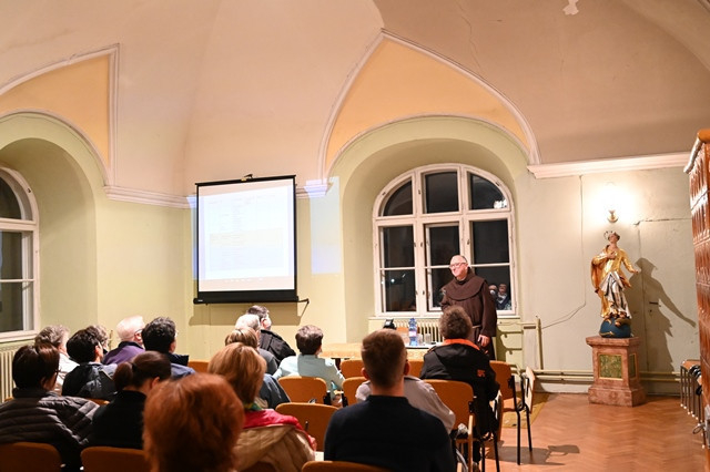 Szép számú közönség gyűlt össze a plébánia oratóriumában, akiket Tokár János OFM plébános köszöntött. Mint mondta, azért hívta meg Kapisztrán atyát, hogy bemutassa, hogyan lehet a mindennapjainkban előforduló gondokat, problémákat ferences lelkiséggel, szellemiséggel kezelni.