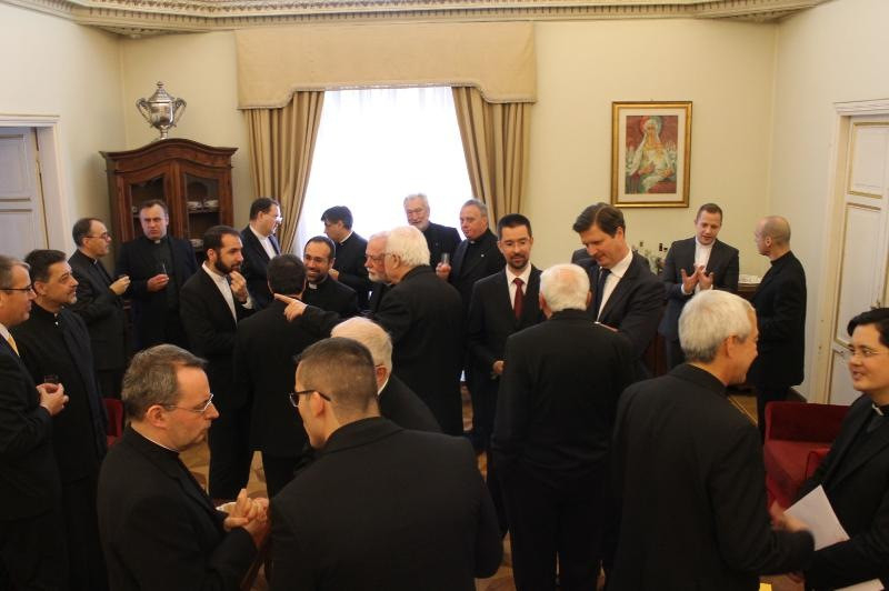 A díszebéden, amelyre ezúttal november 14-én került sor, részt vettek a szentszéki hivatalok, a pápai egyetemek, a társkollégiumok és a magyar intézmények képviselői, többek között Paul Richard Gallagher érsek, a Szentszéki Államtitkárság államközi kapcsolatokért felelős titkára (a Szentszék külügyminisztere), Jorge Carlos Patrón Wong érsek, a Klérus Kongregáció szemináriumokért (és papi kollégiumokért) felelős titkára, Angelo Acerbi érsek, hazánk rendszerváltást követő első apostoli nunciusa, Habsburg-Lotharingiai Eduárd főherceg, Magyarország szentszéki nagykövete, aki elsőbeosztottjával, Érszegi Márk Auréllal érkezett, valamint Bernard Ardura premontrei, a Történettudományok Pápai Bizottságának elnöke is.
