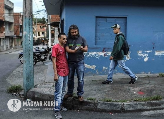Katolikus pap egy volt elítélttel, egy bűnbanda egykori tagjával Medellínben