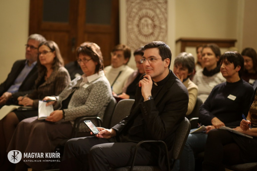 Kató Csaba, az Esztergom-Budapesti Főegyházmegye Hitoktatási Felügyelőségének munkatársa azt a keresztelési segédanyagot mutatta be a résztvevőknek, melyet a főhatóság állított össze. Ebben a kiadványban a szemlélet, az elvi megfontolások és a gyakorlati ötletek szoros összefüggésben vannak. Hét „szereplője” van a segédanyagnak: Isten, a katekéta, a gyerek, a szülők, a lelkipásztor, a plébániai közösség és a keresztszülők.