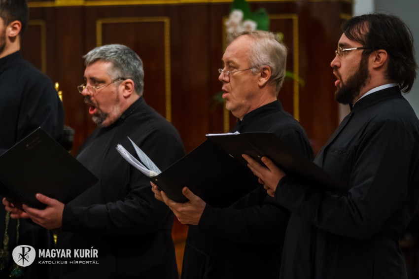 A koncert első felében a Szent Liturgia, a vecsernye és az utrenye (a hajnali dicséret) állandó énekeiből hallhattunk részeket, majd aktuális imádságként – hiszen az orosz ortodoxok most ünneplik karácsony misztériumát – karácsonyi énekek hangzottak el. Fellépésüket a Szent Efrém Görögkatolikus Általános Iskola Lautitia kórusa vezette be Nemes József vezénylésével.