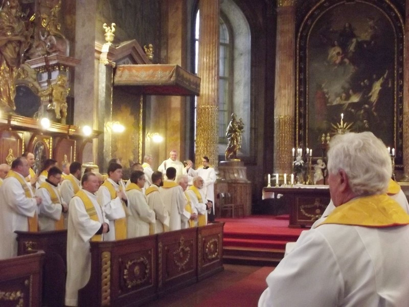 Délben a győri Nagyboldogasszony-székesegyházban Veres András megyéspüspök együtt mutatott be szentmisét a lelkigyakorlatra érkezett lelkipásztorokkal.